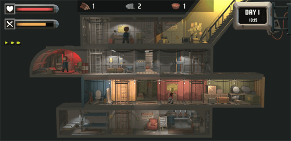 在最初的“60”秒内,物资的多少到避难所中,可以决定玩家前期的方向,资源多了,就可以少出去探索。
