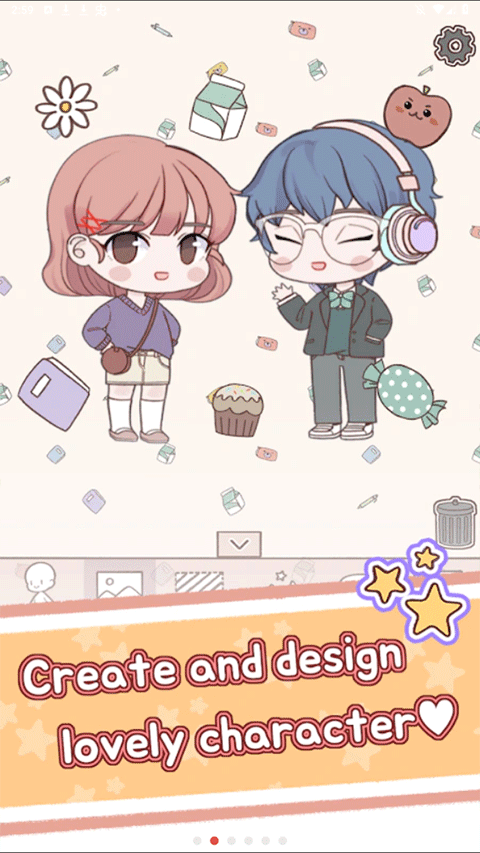 进入游戏后,点击下方"+"号即可创建新角色。在角色编辑界面,你可以自由调整肤色、眉形等面部特征。完成装扮后,如果不满意可以随时点击右上角"旋转"按钮重新调整,点击"↓"图标即可保存当前造型。最后还能为娃娃添加精美的背景和装饰,打造专属于你的个性娃娃。