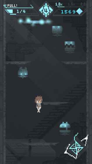 本作灵感来源于经典动作游戏《Downwell》,玩家将跟随主角踏上寻找青梅竹马的冒险之旅。在探索遗迹的过程中,玩家需要不断提升角色实力,同时揭开隐藏在遗迹中的秘密。游戏最具特色的旋转机制要求玩家在关卡变换时及时调整手机方向,为战斗增添了更多策略性。