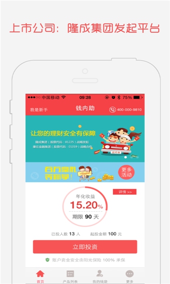 钱内助是由隆成集团打造的互联网金融平台!
