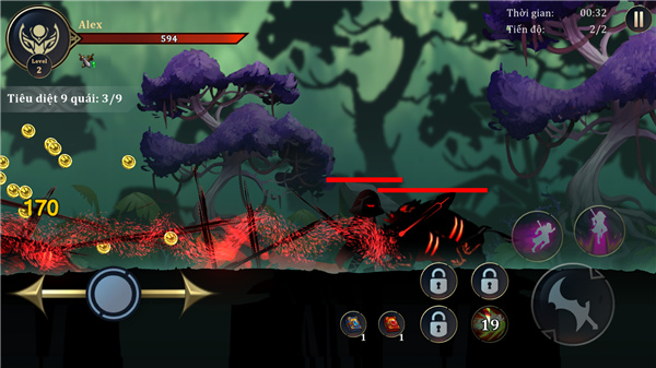 开始旅程,你必须控制亚历克斯摧毁森林中的怪物,他们会攻击亚历克斯每当他们遇到,怪物是无限的,他们繁殖和增殖非常迅速。英雄不仅要与普通的怪物战斗,还要与具有巨大伤害和极其危险技能的老板战斗。战斗到底-否则就死!