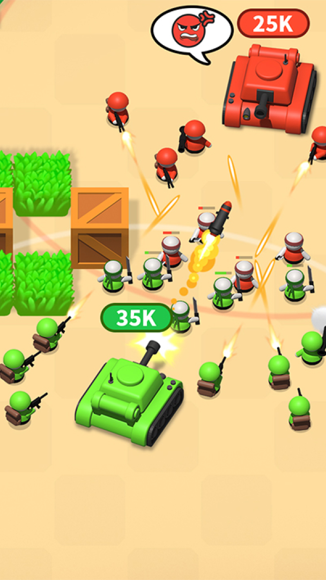 游戏中你可以驾驶性能卓越的坦克,搭配炫酷的涂装外观,在战场上展现英姿。支持多人在线对战,通过精准的炮弹发射击败对手。当被敌人锁定时,可以巧妙利用草丛隐蔽身形。攻击时要注意地形障碍,避免炮弹被墙壁阻挡。最终目标就是突破重围,成为战场上最后的胜利者。