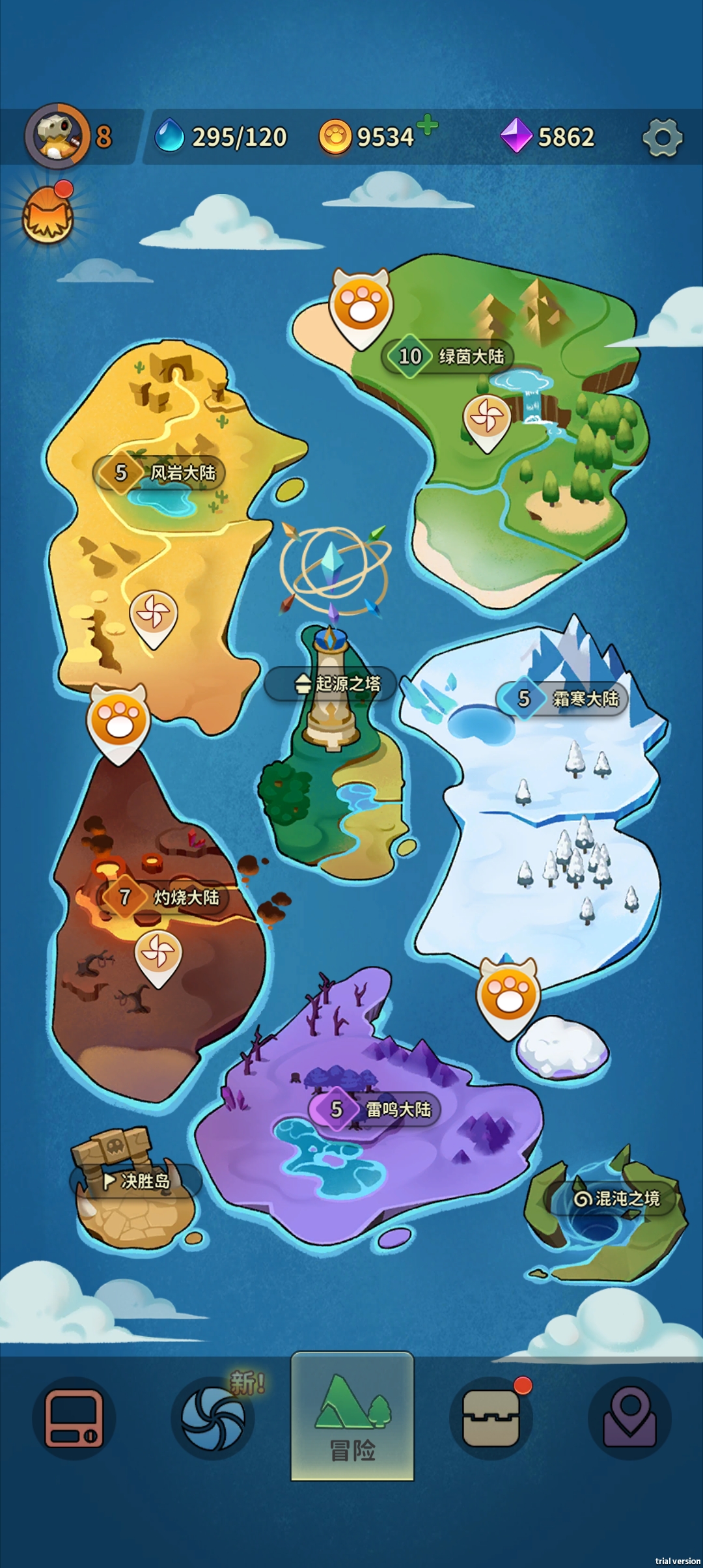 宠物养成,带着自己的一群小精灵去大陆上各个区域探险,没有繁杂的世界观,没有繁杂的装备强化、装备升星、装备附魔等等让人心烦的装备系统,对宠物的养成特别简单。