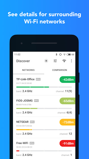NetSpotAPK是一款专业的WiFi分析工具,让用户能够轻松查看家庭及周边区域的无线网络状况。这款应用可以准确显示WiFi名称、信号强度、工作频率等关键数据,无需连接外部服务器,更不会收集用户隐私信息,纯粹专注于网络分析功能。