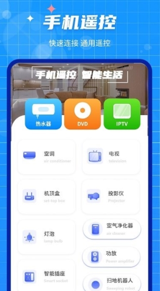 手机遥控,快速连接,智能生活更便捷,及内置红外线或者NFC经常通讯,可通过遥控热水器调节水的温度,控制DVD更换碟片,调整音量大小,清晰度。