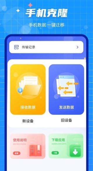 手机数据一键转移,旧设备发送数据,新设备接收数据,可下载对应的应用,进行简易操作,应用中有形象的使用说明,传输过程中有动态影像展示。