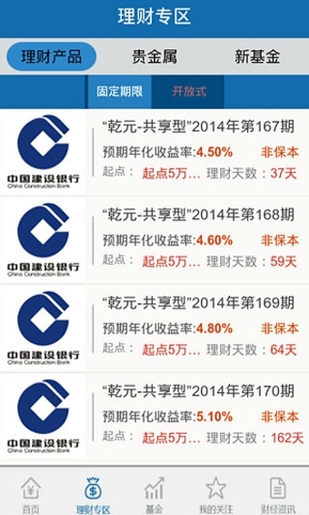 实时更新贵金属、外汇及基金市场行情,提供专业财经资讯。精选建设银行优质理财产品,支持产品查询、对比、预约及购买一站式服务,助您把握投资良机。