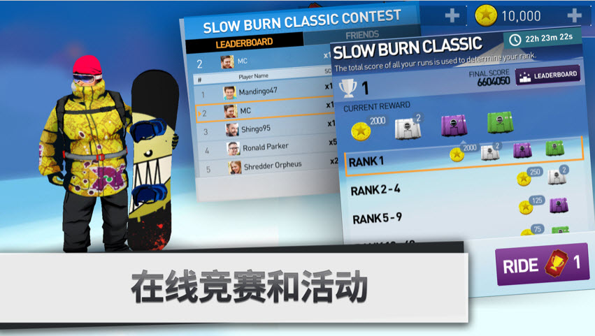 参与每日挑战,收集装备补给。在线上竞赛和限时速降赛中脱颖而出,赢取专属奖励和稀有装备。