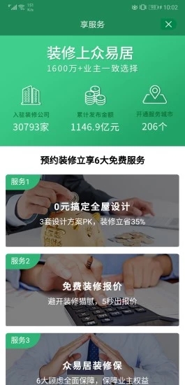 6大装修服务(免费设计、免费报价、装修、装修保、装修贷、1对1人工服务),让装修省力省心更!