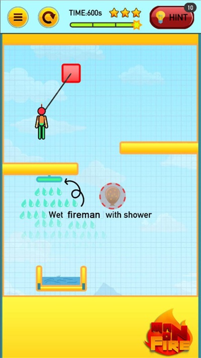 游戏中准备了多种实用道具,玩家可以利用这些工具帮助火柴人灭火。每次成功通关都能获得通关提示,这些提示将助你更快完成后续挑战。