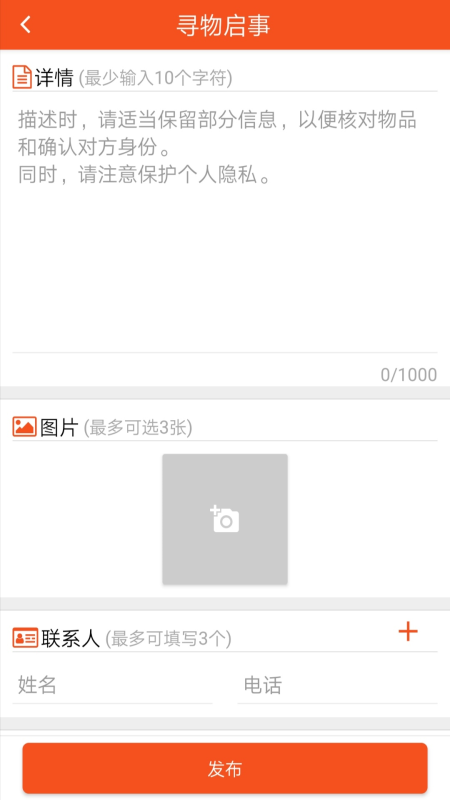 用户可以在上面发布寻物启事,软件会快速的在平台上开来,让更多的人看到自己发布的消息。