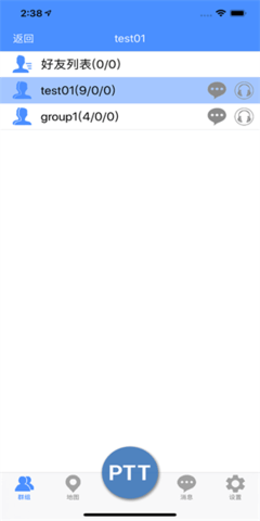 进入固定群组后,用户可以向该群组内的所有在线用户拨打电话,也可以接听该群组内其他用户的电话。