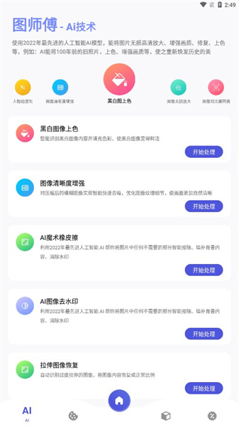 AI相关:黑白图像着色、图像清晰度增强、AI橡皮擦、AI图像去水印、图像无损放大等;
