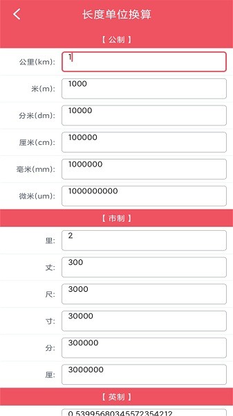长度单位换算:可实现公里(km)、米(m)、分米(dm)、厘米(cm)、毫米(mm)、微米(um)、里、丈、尺、寸、分、厘、海里(nmi)、英寻、英里、弗隆(fur)、码(yd)、英尺(ft)、英寸(in)间的互转互换。