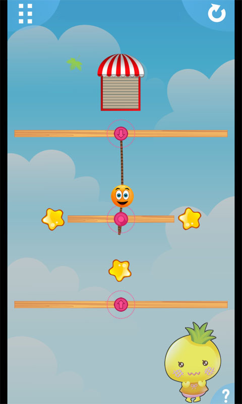 摇摆柳丁大是一款玩法类似割绳子的休闲益智游戏。游戏采用清新简约的画风,画面中点缀着闪亮的星星和呆萌的水果小精灵,为游戏增添了不少趣味性。玩家需要帮助可爱的柳丁收集关卡中的所有星星,当集齐星星后,出口大门就会打开,让柳丁顺利进入下一关。但要小心那些危险的尖刺,它们会刺破脆弱的柳丁哦。