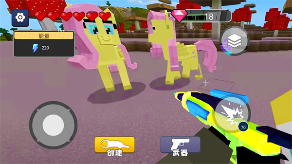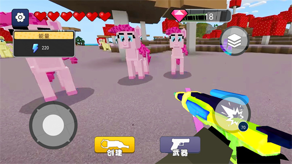 小马沙盒乐园是一款融合像素风格与自由建造元素的创意游戏。玩家可以充分发挥想象力,将小马主题与沙盒玩法完美结合,打造属于自己的独特世界。在冒险过程中,你需要探索广阔的地图,搜寻敌人踪迹,运用各种武器精准射击,消灭所有对手才能取得胜利。游戏采用爱心系统代表生命值,一旦耗尽将导致挑战失败,需要重新开始冒险旅程。