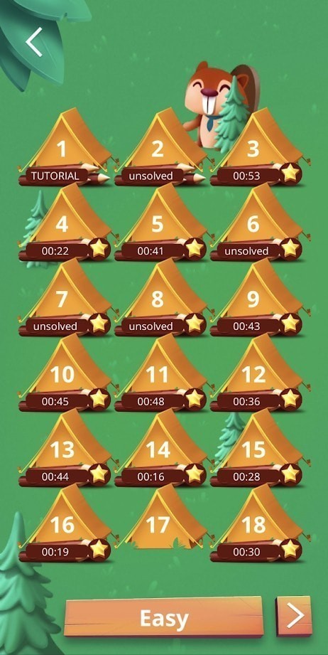 游戏采用三星评分系统,想要解锁更多内容就必须争取在每个关卡都获得三星评价。全新的主题内容让游戏体验更加轻松愉悦,完成挑战可获得丰厚回报。合理规划树木与帐篷的布局,持续完成任务目标,享受解谜的乐趣。