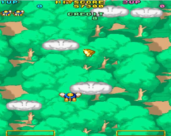 一个单机从云里打叮当的飞机游戏,名字是出发!! 兵蜂 (Bells & Whistles)。游戏信息Bells & Whistles (c) 02 1991 Konami 街机游
