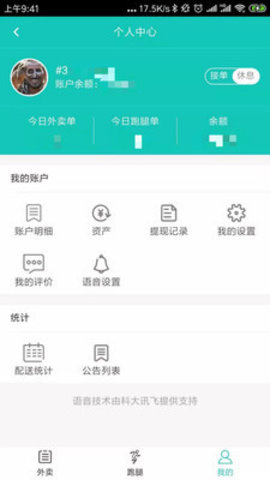 配送员可以在APP中便捷地进行实名认证、接收订单与配送、订单数据的管理查询、账户管理及余额提现等。
