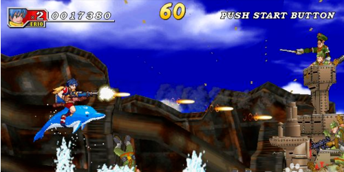 这是一款经典的射击类游戏,真实游戏画面要比上图精美的多,游戏场景宏大,节奏紧凑,曾经被誉为“超越《合金弹头》系列的神作”,可惜是2003年推出的,而之后街机慢慢的开始没落,也导致这款游戏没有火爆起来!
