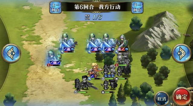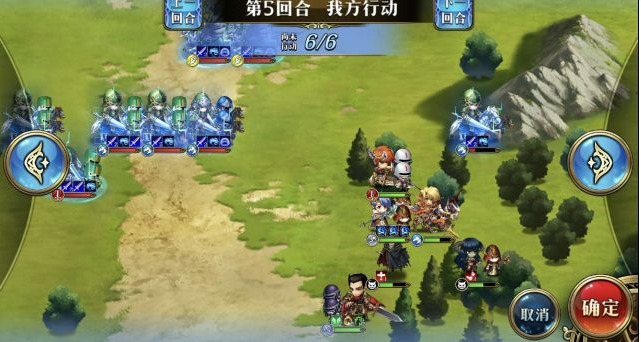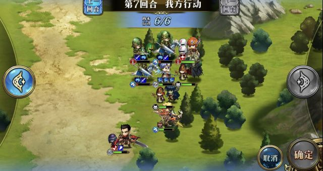 5回合海恩圣言收了骑兵,其他人往右移动避开骑兵飞兵的行动范围(我的艾尔文站在右上角正好在利亚特强袭范围内)