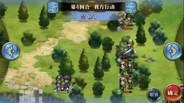 4回合,凤凰舞A到右边3个敌人再往左走,之后反击打残1个枪兵。