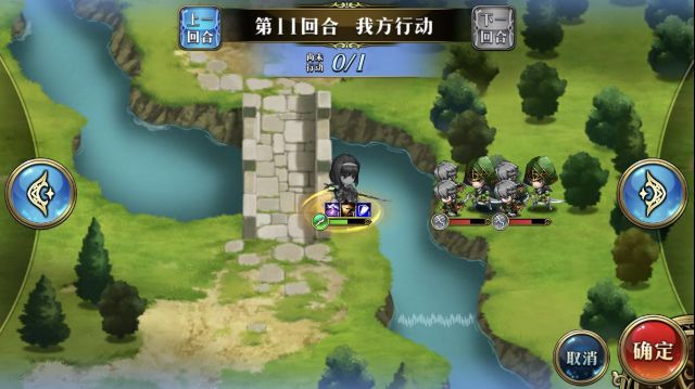 1回合蝴蝶舞A到上方2个骑兵,之后去河道安全地区。