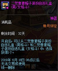 二觉像素帽子装扮自选礼盒(男/女格斗),开启后可以从二觉像素帽子装扮自选礼盒(男格斗)和二觉像素帽子装扮自选礼盒(女格斗)中选择获取到1个。