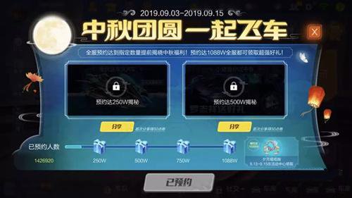在9月3日-9月15日期间,在活动中心参与预约即可领取点券*100,当全服预约人数达到指定数量提前揭晓中秋福利!