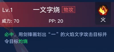 2、一文字烧:必中,用剑锋划出“一”的火焰文字攻击目标并令目标烧伤;