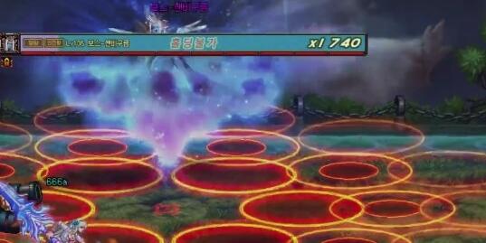 技能一:BOSS移动到一名角色的头上,在角色的脚下生成一个较大的雷电区域,并随机生成单个落雷攻击。