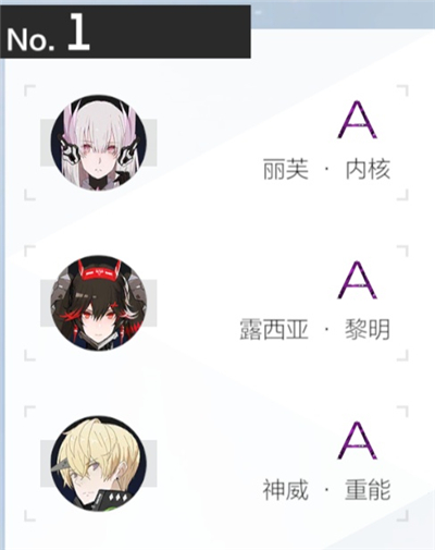 阵容推荐:丽芙内核+露西亚黎明+神威重能