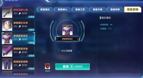 玩家花费陨石和比特币来刷新装备的随机属性,以达到自己需要的属性。