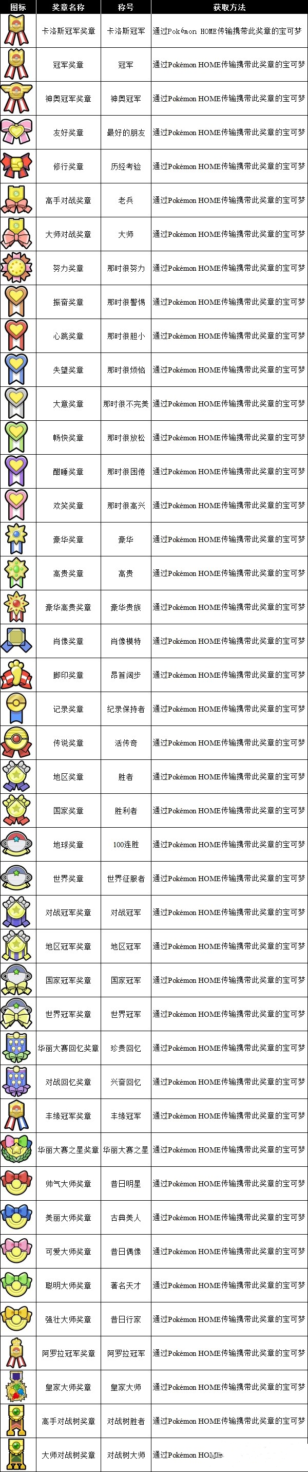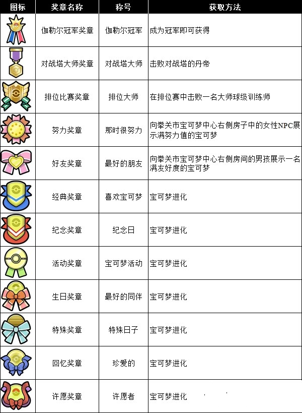 ※一些表现性格、天气的奖章可以通过【在特定天气下捕捉宝可梦】或【捕捉特定性格的宝可梦】获得;露营时做完咖喱再捕捉宝可梦也会有几率获得喜爱咖喱的奖章。