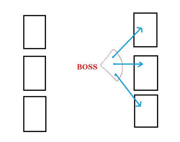 如图,一号点下有一块横木,如果是在横木是左边,那么影子就是在一号区域,对应BOSS位置在二号区域。如果在横木的右边,影子就在四号区域,对应BOSS位置在三号区域。