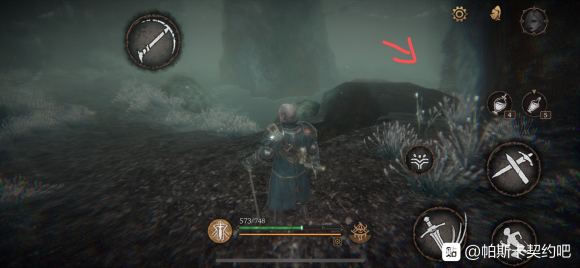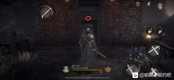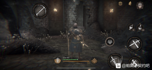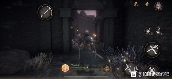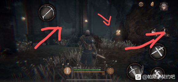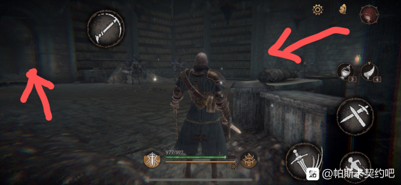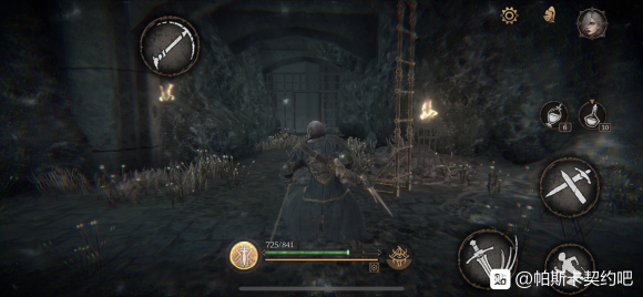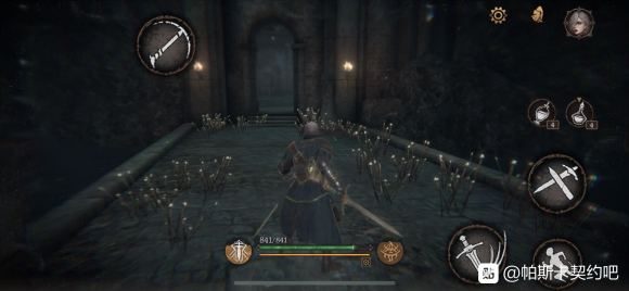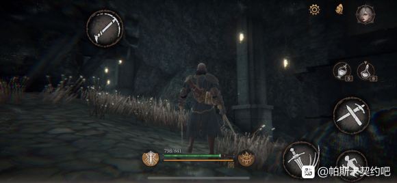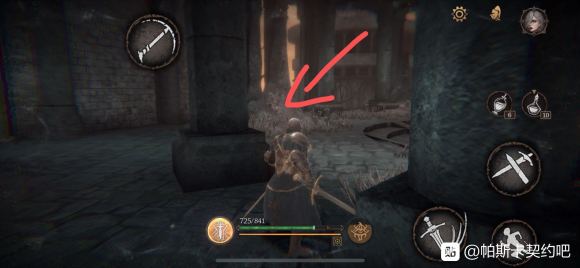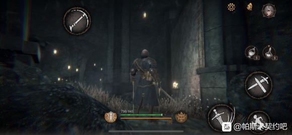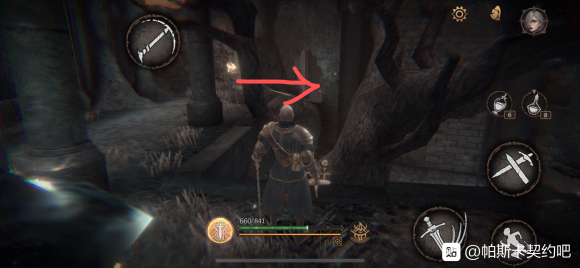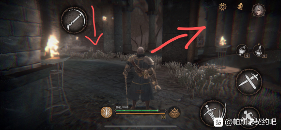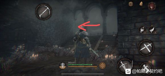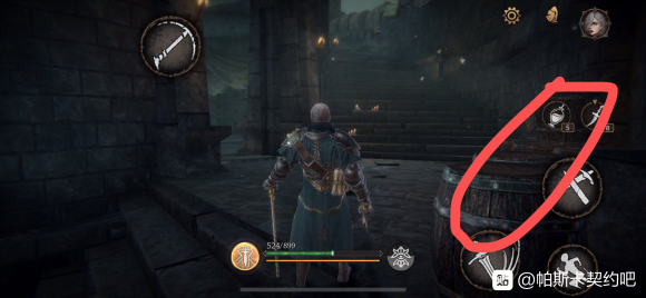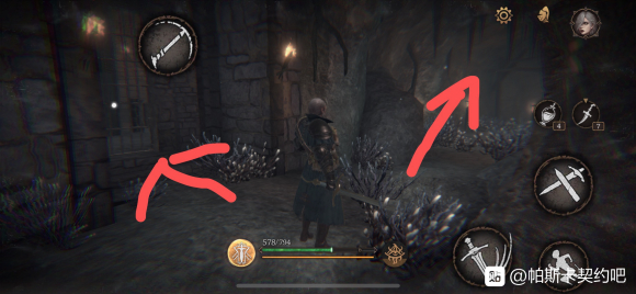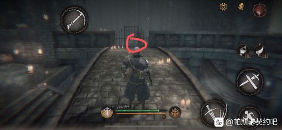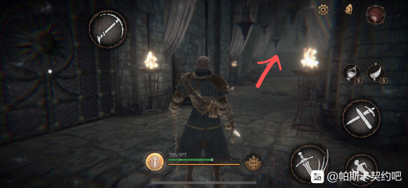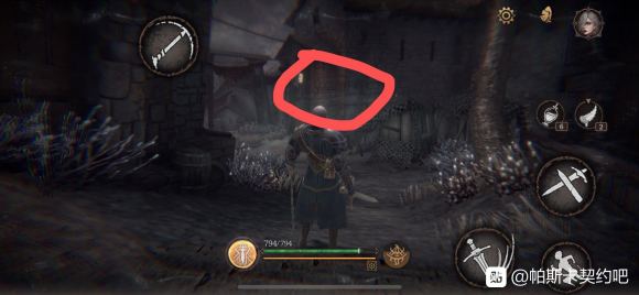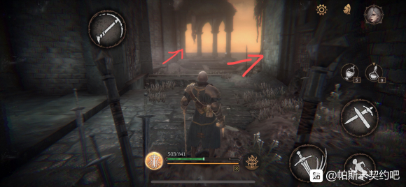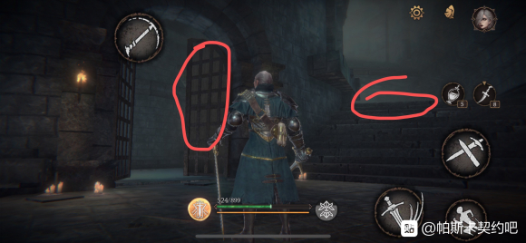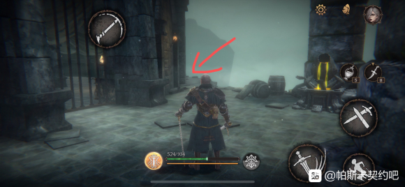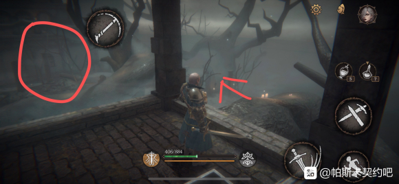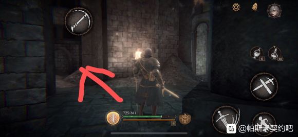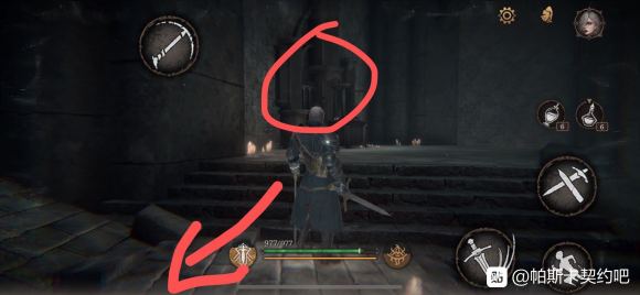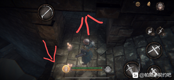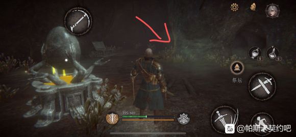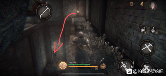 1,跳下洞口后往左回到第一个祭坛的铁门处,路上会看到通往第四个圣柱、三圣所的楼梯,也是拿到圣剑后过来完成支线的捷径。