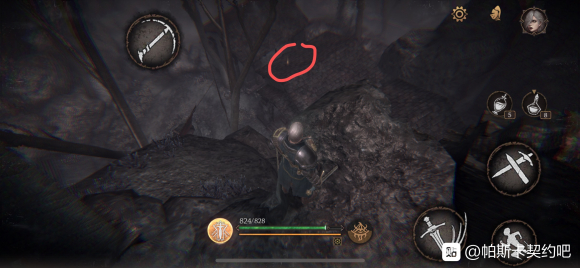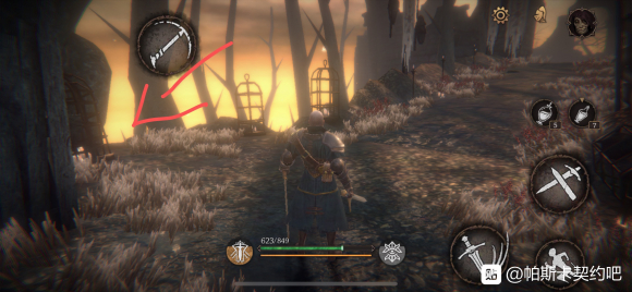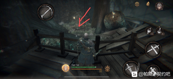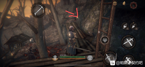 1,上小塔之后正对宝箱的树干下去就是圣塔,走右边进门会触发一点剧情(我每次都是走的右边)。塔的背后有个祭坛和吊桥,吊桥对面就是无头骑士。