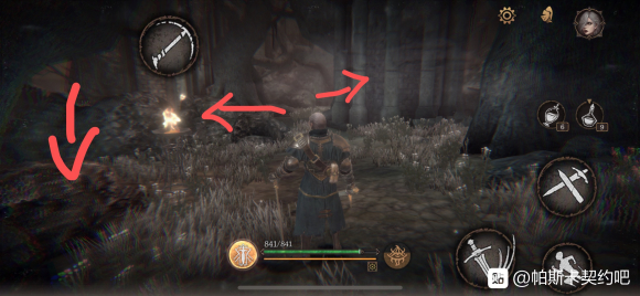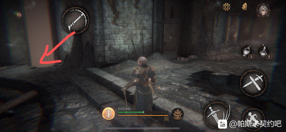 1,拿完东西,返回黑精处,上楼前往苦修者那里的桥往前走,遇到两个祭司往左。