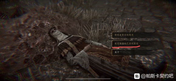 3,然后返回,沿着之前的路去找黑精之前地点,和躺在地上的修女对话,接圣剑任务。