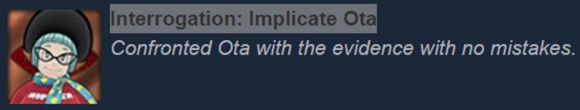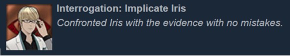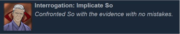 游戏中有四个场景需要你出示证据并审问犯人。在此过程中,证据全部正确则可获得成就。对话不算在成就范围内,安心出示证据吧。