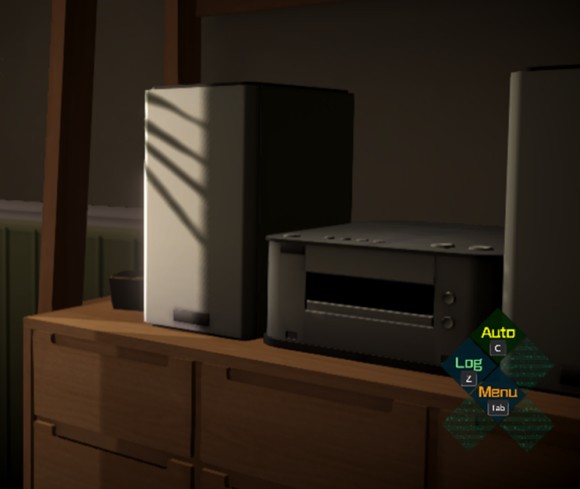 把视角转到最右面,然后点击调查【小型组合音响】,点到不能点为止。(对话很谔谔)