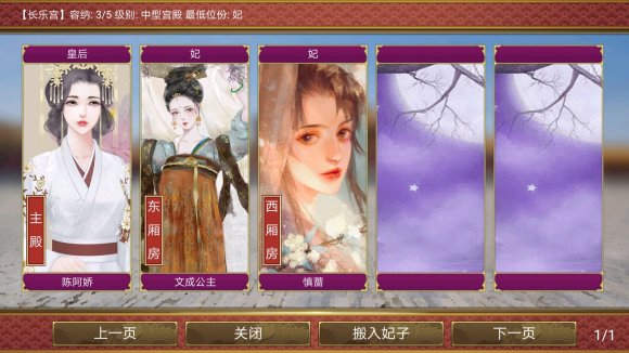 如果不带相关天命,初始给三个宫殿,其中一个是长乐宫,最低位份妃。如果宠爱够了又不想封妃又没有宫殿,可以先抬位,搬进去后再降位(这操作,说不出的奇怪)是中型宫殿。其他两个是小型宫殿。