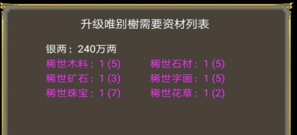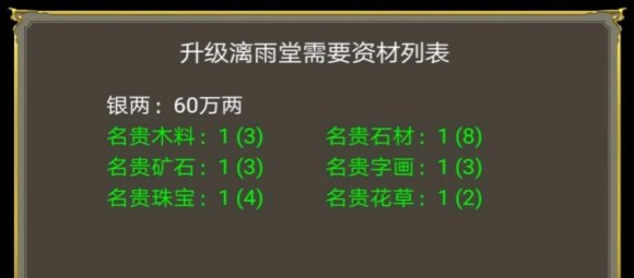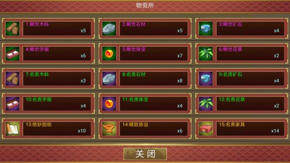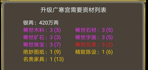 P1至P3分别是各规模宫殿升级所需的资材,具体持有数目可以在东厂—物资所查看。绿色低级材料,紫色高级材料,黄色高级材料。
