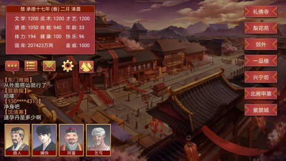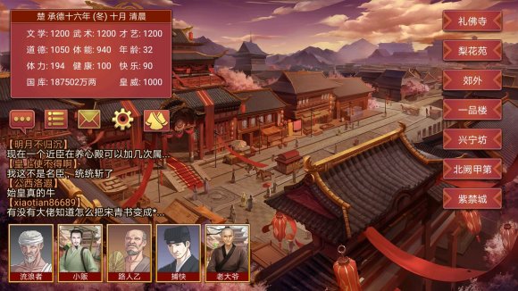 6.每年8月〔晚上〕去京城,不参加中秋晚会,概率遇到名妃,才艺500以上可以带走。太肝了不推荐