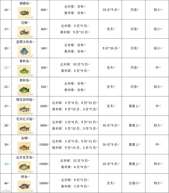 动物森友会《AnimalCrossing》3月北半球鱼类图鉴