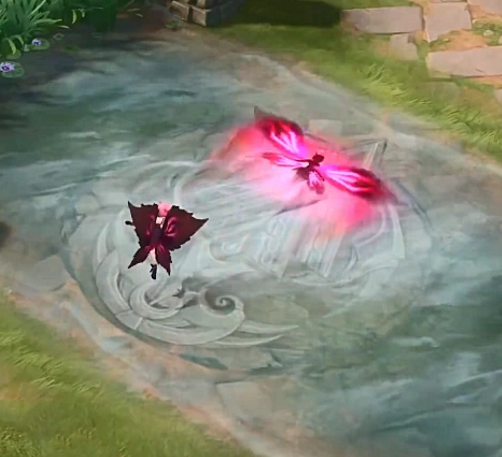 首先是一技能,图片中看到这皮肤的特效颜色为酒红色,释放技能后会有一个超大的蝴蝶飞出去,看起来非常逼真和炫酷,相信这皮肤在游戏里的手感也不会差!