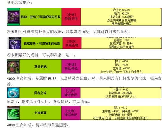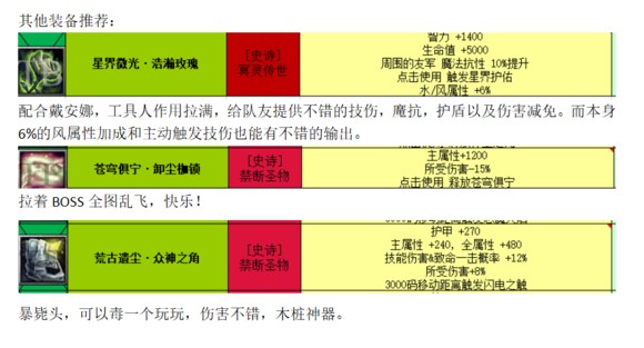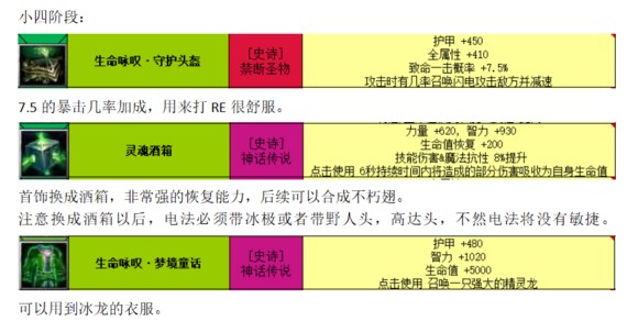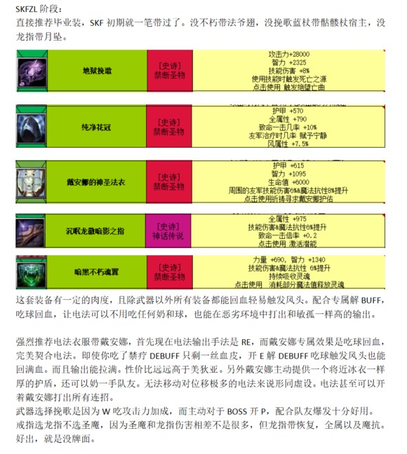 我会直接推荐一套自己认为各个阶段的最强套装(这里最强不是指的输出,而是考虑各个方面。作为一个独档长大的电法,以前从小四开荒到SKFZL,甚至吃不到球。队伍环境比路人更险恶,所以我推荐的所有装备都是基于萌新路人视角来选择的。如果有队伍,有绑定奶,可自己做调整)。另外会推荐一些其他装备。各位可以根据自己的喜好选择。
