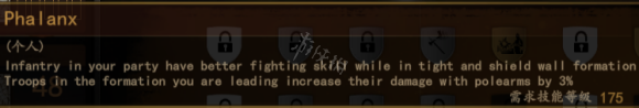 方阵:在步兵保持盾阵和密集阵时有更好的战斗技能。