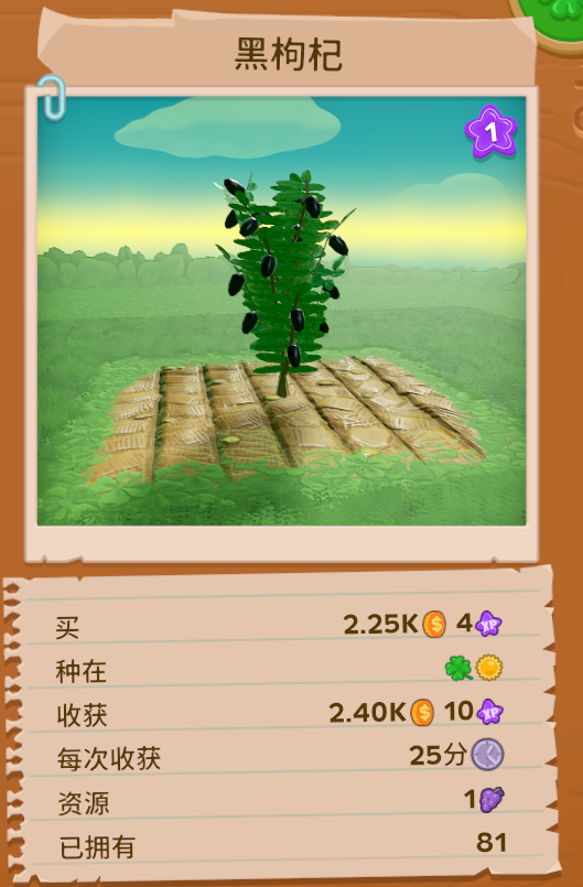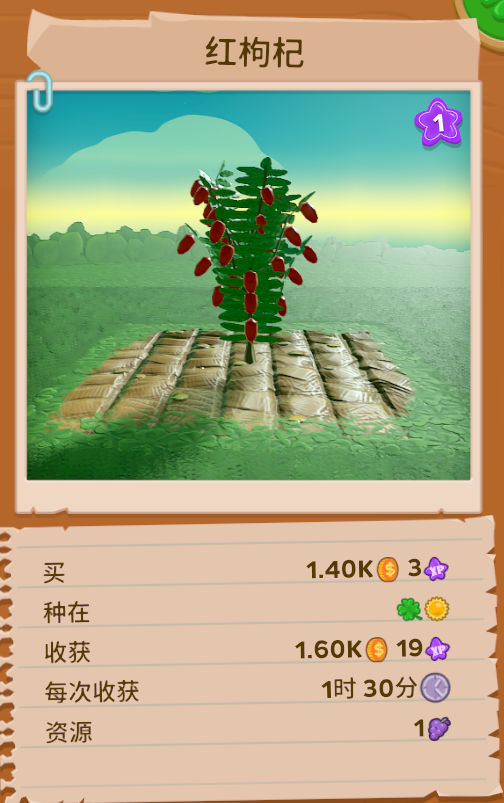 看来红枸杞也解锁了,记得多种一点,用来解锁黑枸杞,这样的话,春夏就可种黑枸杞,秋冬就可以种豆薯,一年四季都可以有活儿干了!