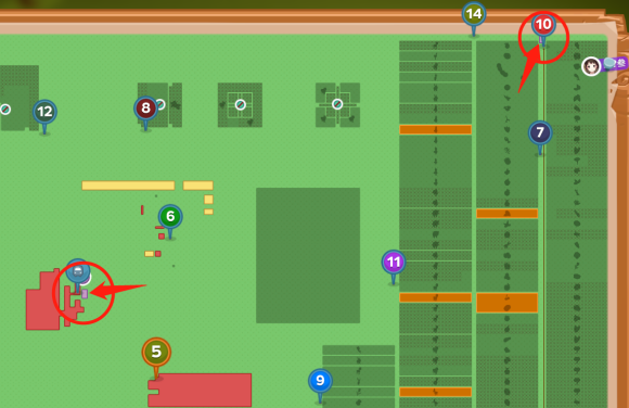 地图上类似这样的黑色小叉叉就是可收获区域(鱼塘不会显示黑色叉叉)